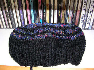 DH can rest easy: another soft, fluffy hat (not felted!) will be his when the weather gets cold enough for hats.) This bowl, though, seems to still need a bit more of a clip. Where is that sweater shaver when you need it? Just trimming it with the sewing scissors hasn't brought out the lovely stripes and gradations of color--it's just a halo of fuzz right now. Sigh. If you were a sweater shaver, at my house, where would you hide?